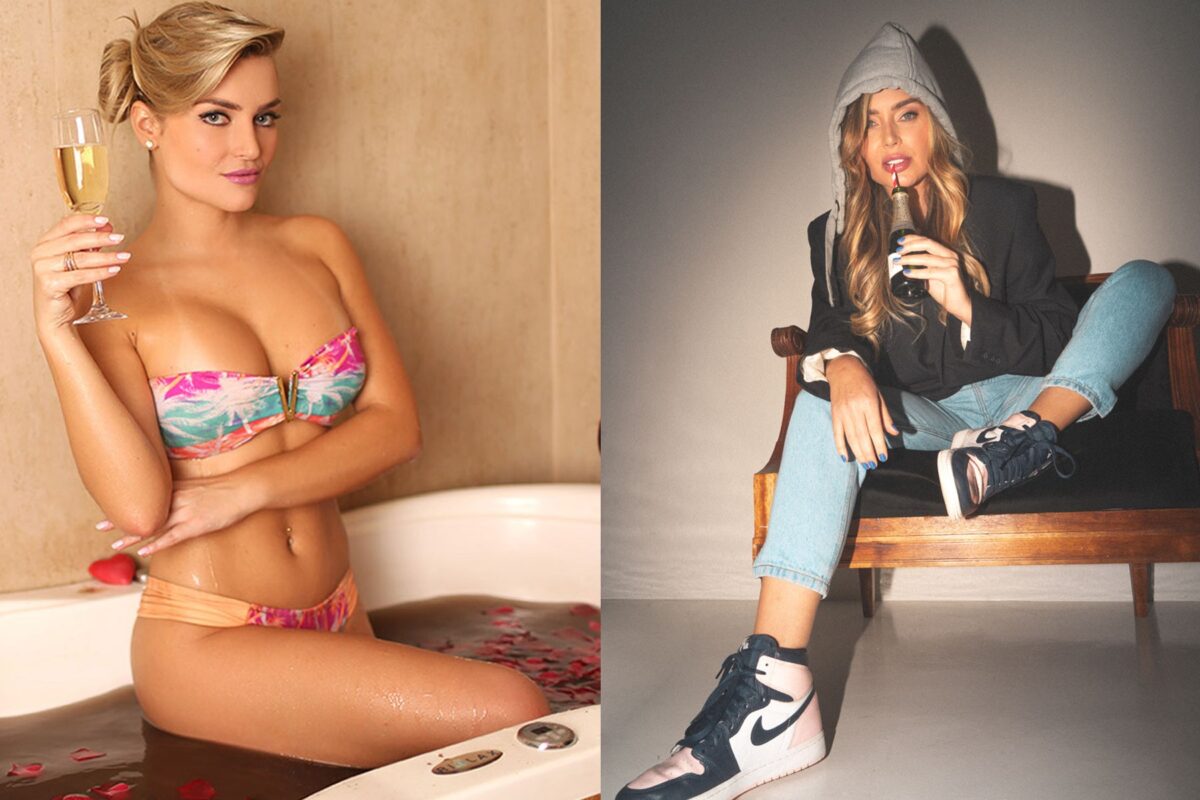 Thaiz Schmitt em ensaio de 2015 e, em 2024, para a Hooks Magazine