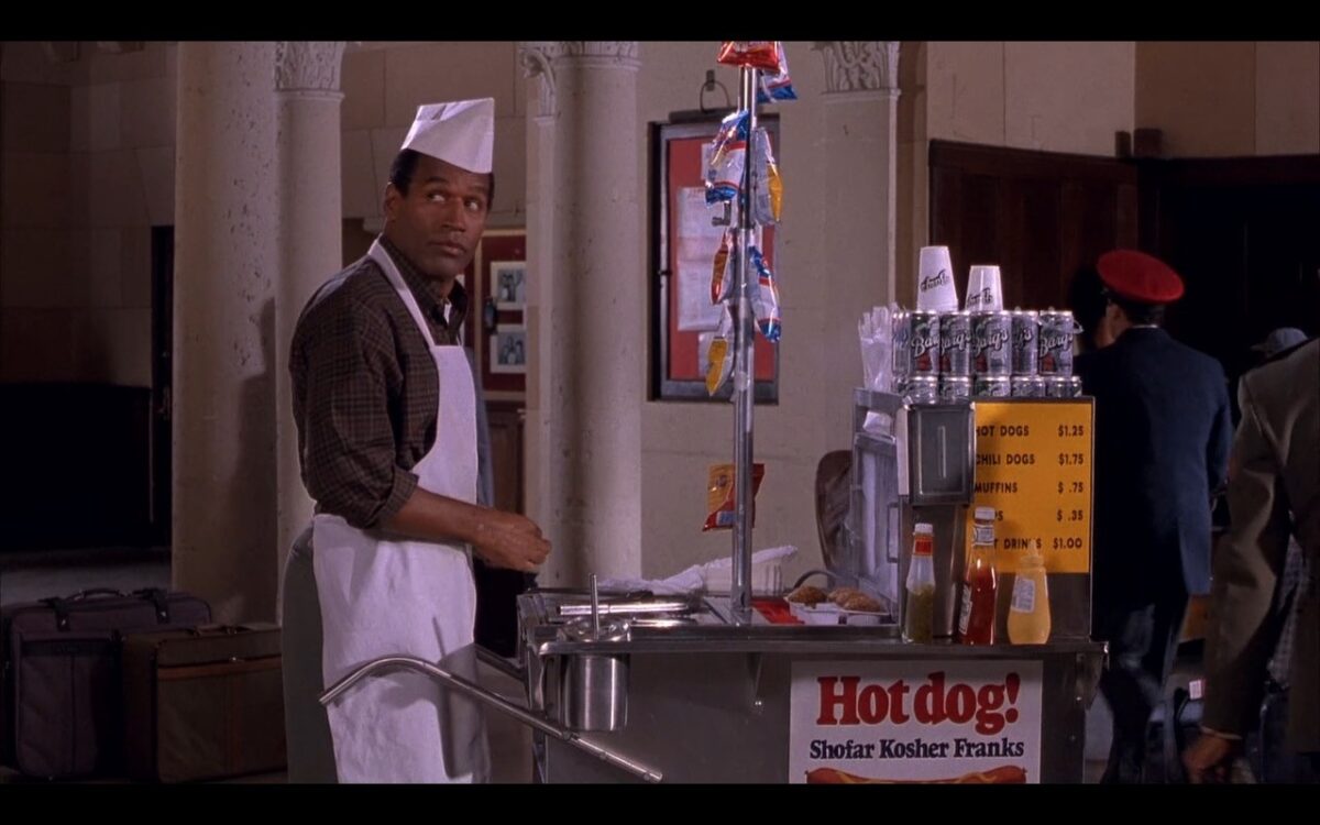Ex-jogador de futebol americano estrelou 3 filmes ‘Corra que a polícia vem aí!’ e foi sondado para ‘O Exterminador do Futuro’. OJ Simpson em cena de ‘Corra que a polícia vem aí! 33 1/3: O Insulto Final’